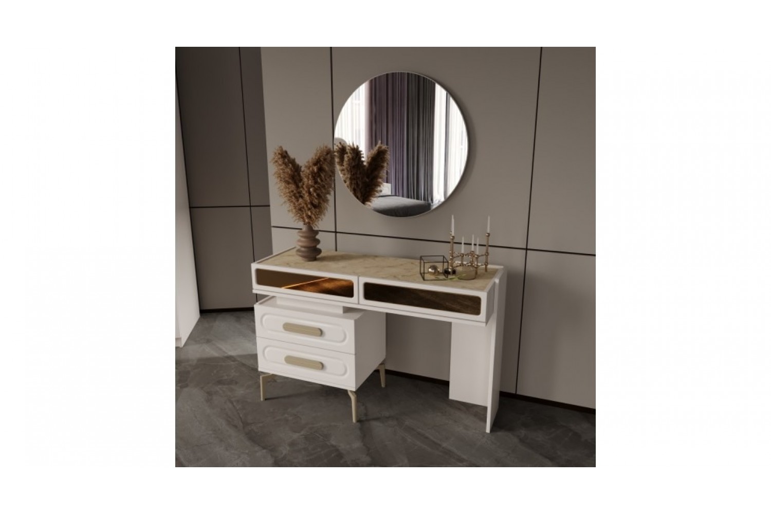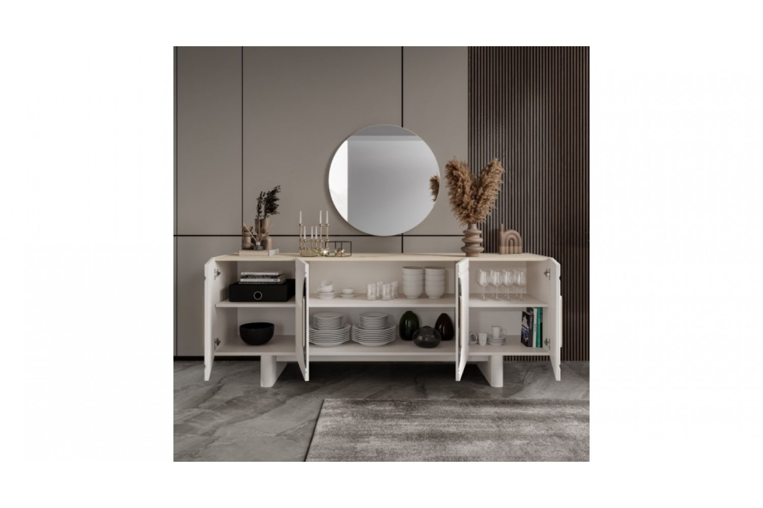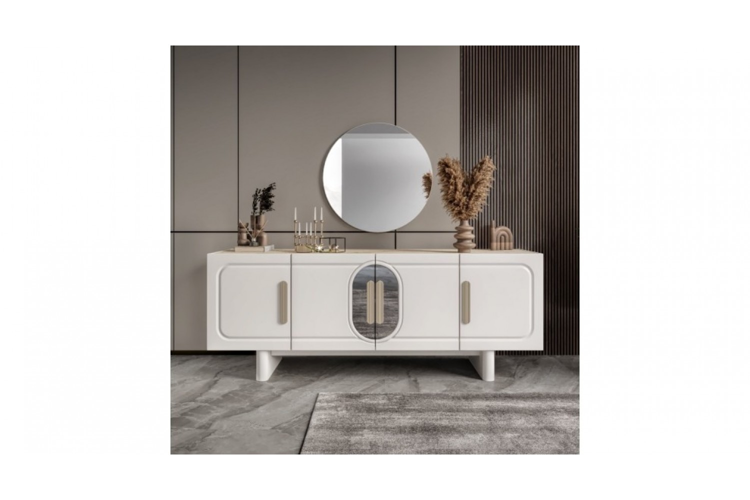Takım İçeriği 1 adet masa + 4 adet sandalye + 1 adet Konsoldan oluşmaktadır. İsteğe bağlı Tv Ünitesi eklenebilmektedir. İsterseniz, Konsolu iptal edebilir yerine TV ünitesini seçebilirsiniz.