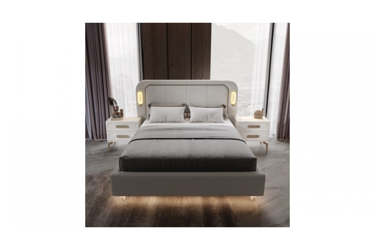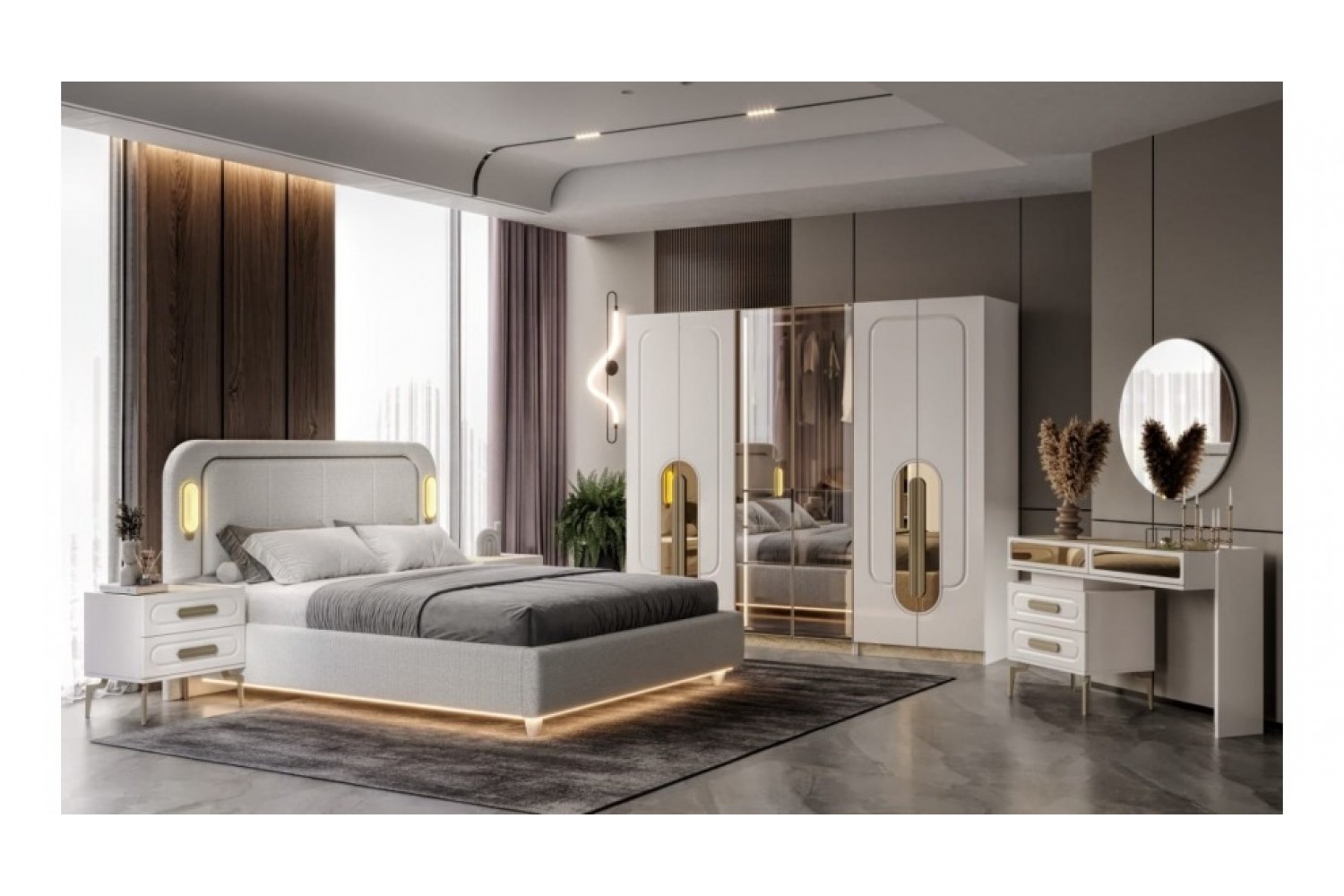 Takım İçeriği 1 Adet karyola,( kendinden bazalıdır) . 1 adet gardırop, 2 adet komidin ve 1 adet şifonyerden oluşmaktadır.