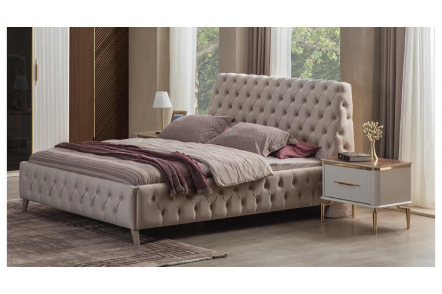 Takım İçeriği 1 Adet karyola,( karyola demiri fiyata dahil değildir . 1 adet gardırop, 2 adet komidin ve 1 adet şifonyerden oluşmaktadır.