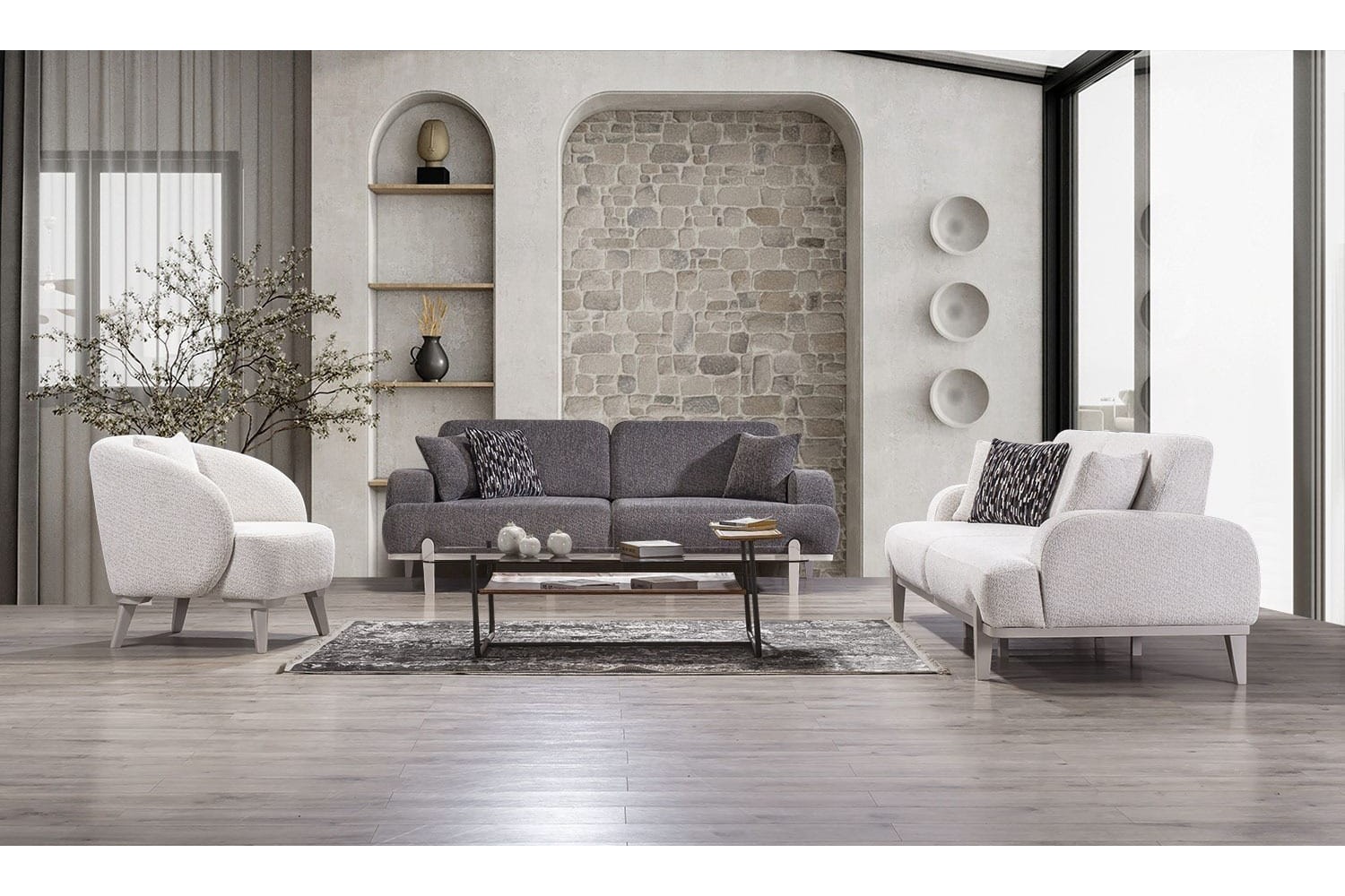 Takım İçeriği 2 adet Üçlü ve 1 adet Berjer'den oluşmaktadır. 3+3+1 dir. İsterseniz 3+3, - 3+1+1 - 3+3+1+1 şeklinde de üretilmektedir.