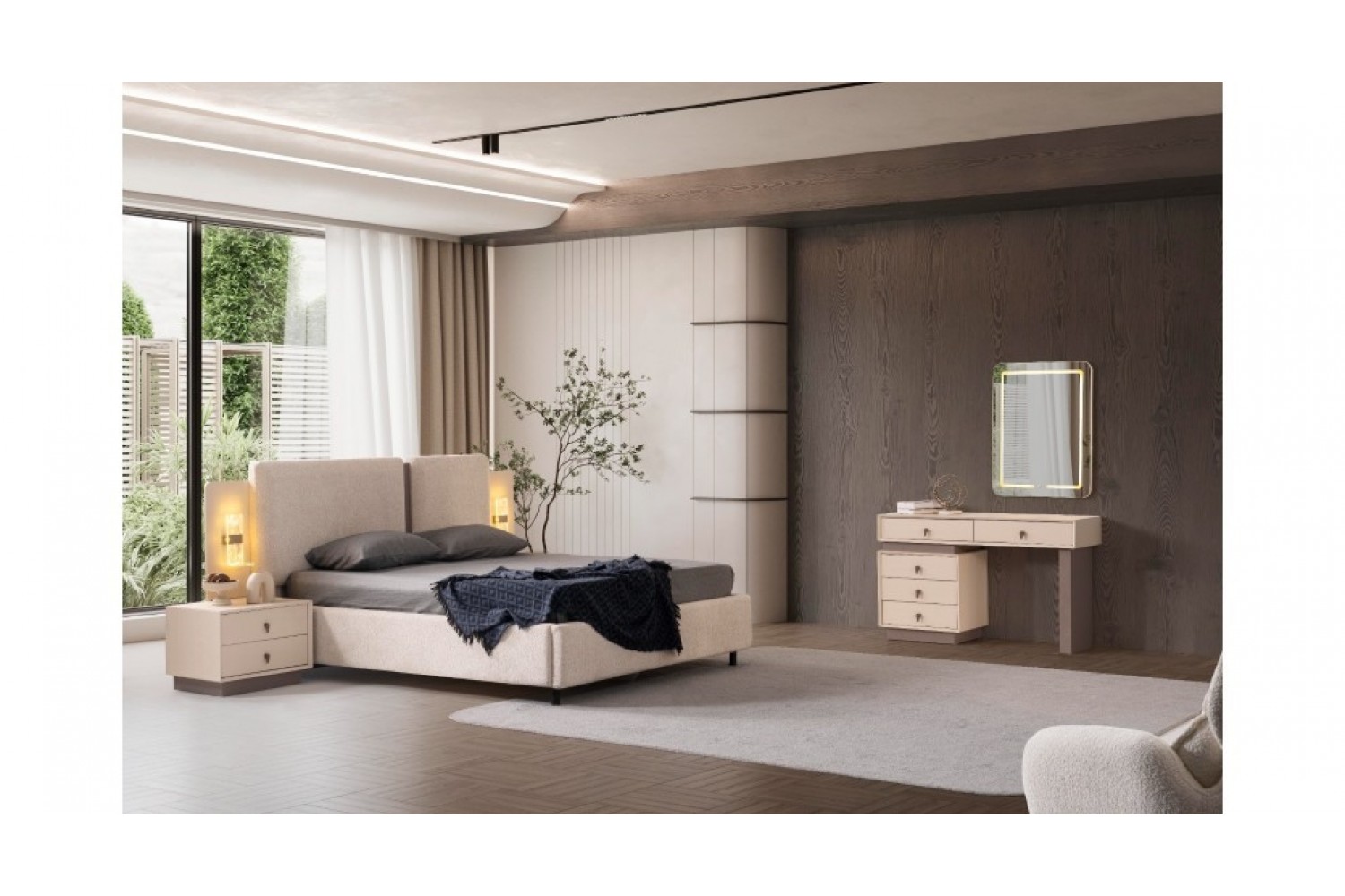 Takım İçeriği 1 Adet karyola,( kendinden bazalıdır) . 1 adet gardırop, 2 adet komidin ve 1 adet şifonyerden oluşmaktadır.