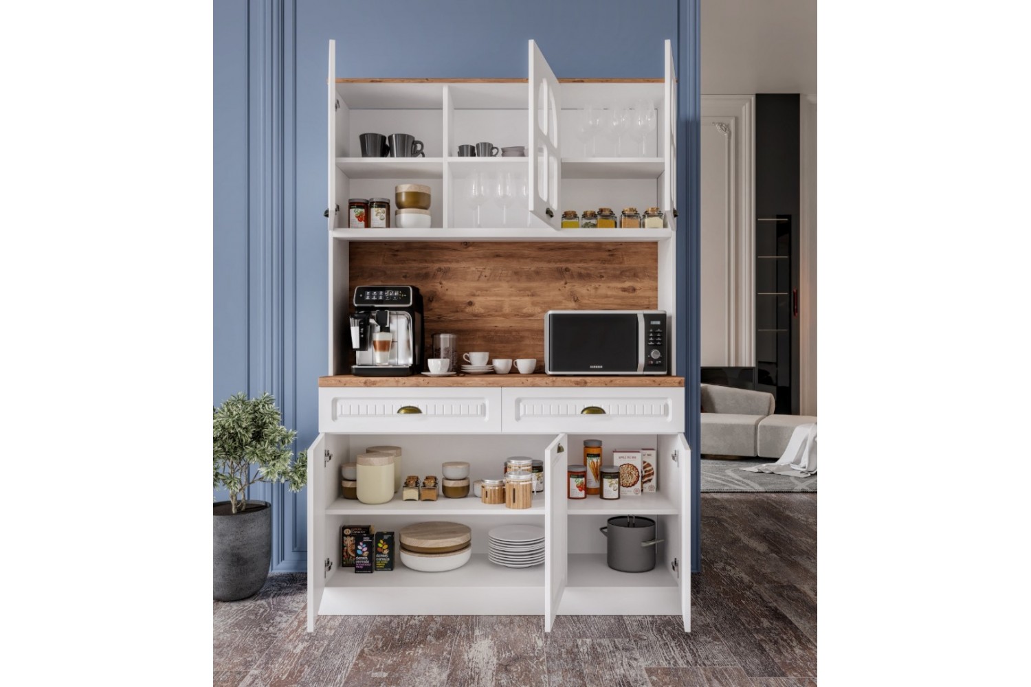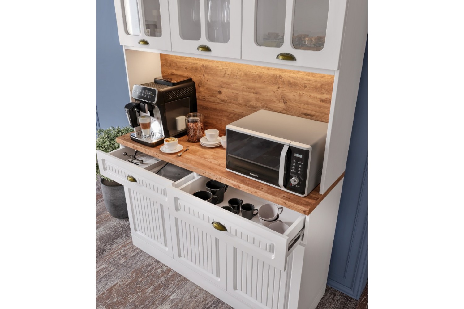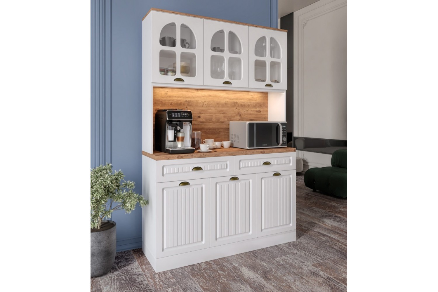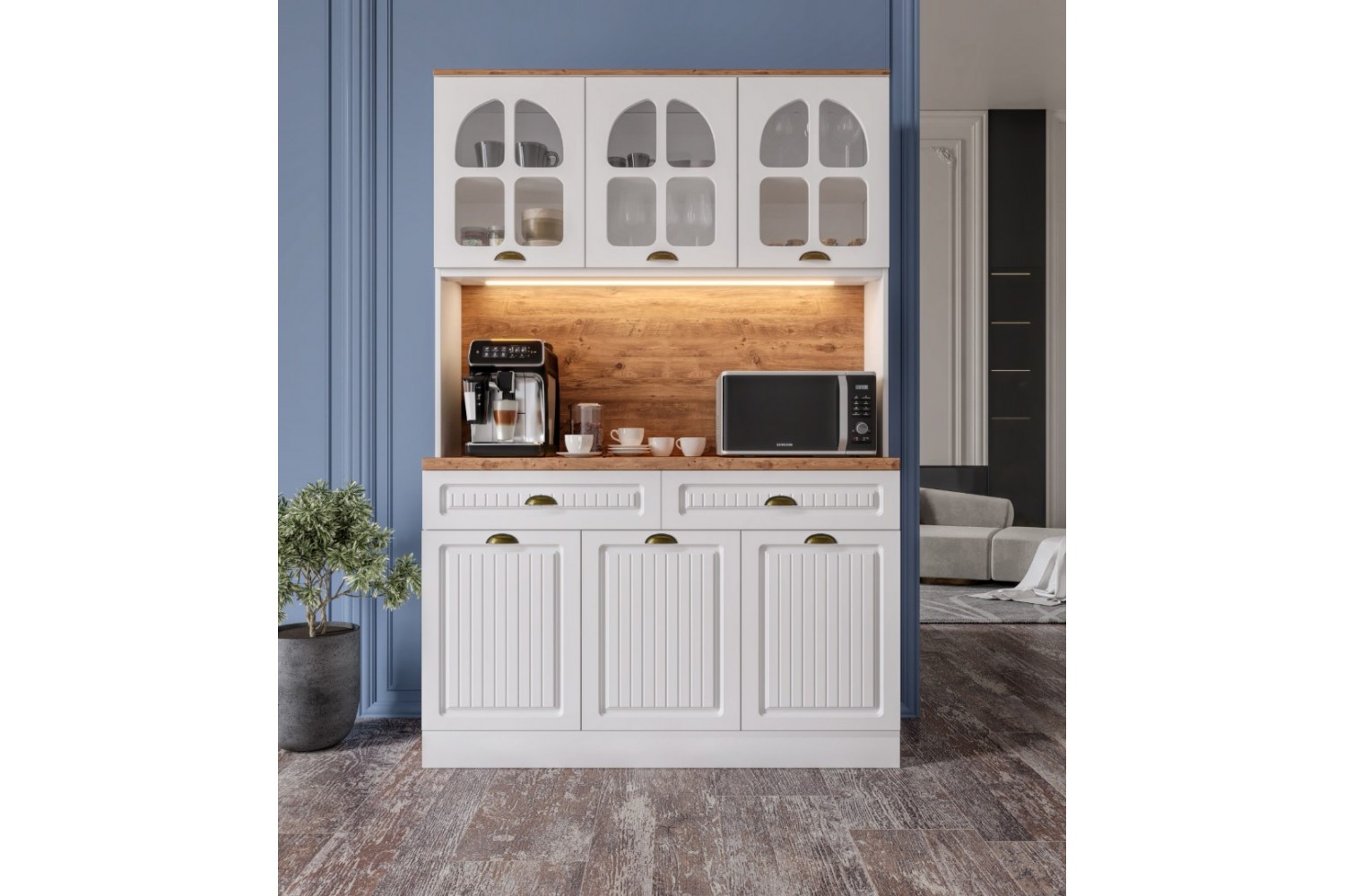 Efes Kahve Köşesi, mutfağınıza şıklık ve işlevsellik katmak için tasarlanmış özel bir mutfak dolabıdır. 140 cm genişliği ile hem kahve köşesi hem de çok amaçlı mutfak dolabı olarak kullanılabilir. Modern tasarımı, dayanıklı MDF gövdesi ve LED aydınlatması ile yaşam alanınıza estetik bir dokunuş katar. Geniş depolama alanı sayesinde mutfak eşyalarınızı düzenli bir şekilde saklamanızı sağlar.