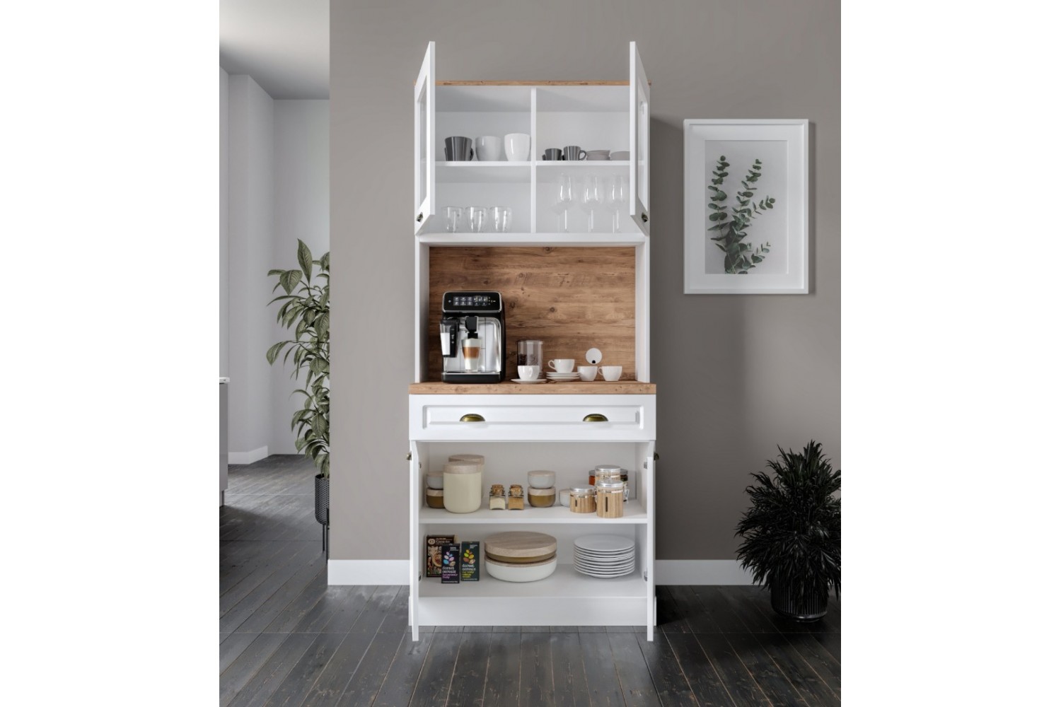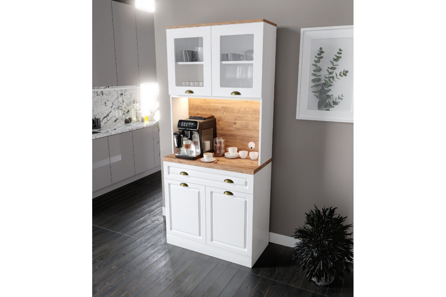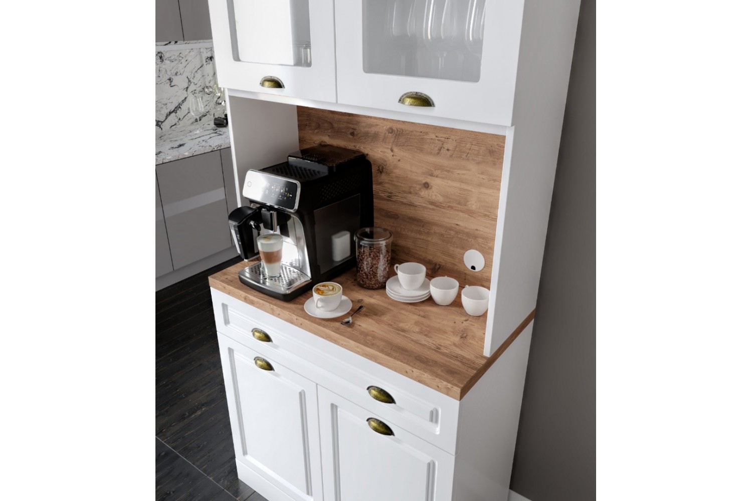 Gözde 93 cm Kahve Köşesi, mutfağında sınırlı alanı olan kullanıcılar için özel olarak tasarlanmış şık ve fonksiyonel bir çözümdür. Dokunmatik sensörlü LED aydınlatması sayesinde karanlık köşelerde dahi şık bir atmosfer sunarken; airfryer, kettle, filtre kahve makinesi gibi elektrikli küçük ev aletleri için ideal bir kullanım alanı sağlar. Üst modülde yer alan cam kapaklı bölmeler estetik bir görüntü sağlarken; alt modülde yer alan frenli teleskopik raylı çekmeceler ve pistonlu menteşeli kapaklar sayesinde konforlu bir kullanım sunar. Gövde ve kapaklar tamamen MDF olup uzun ömürlü ve sağlam bir yapıdadır.