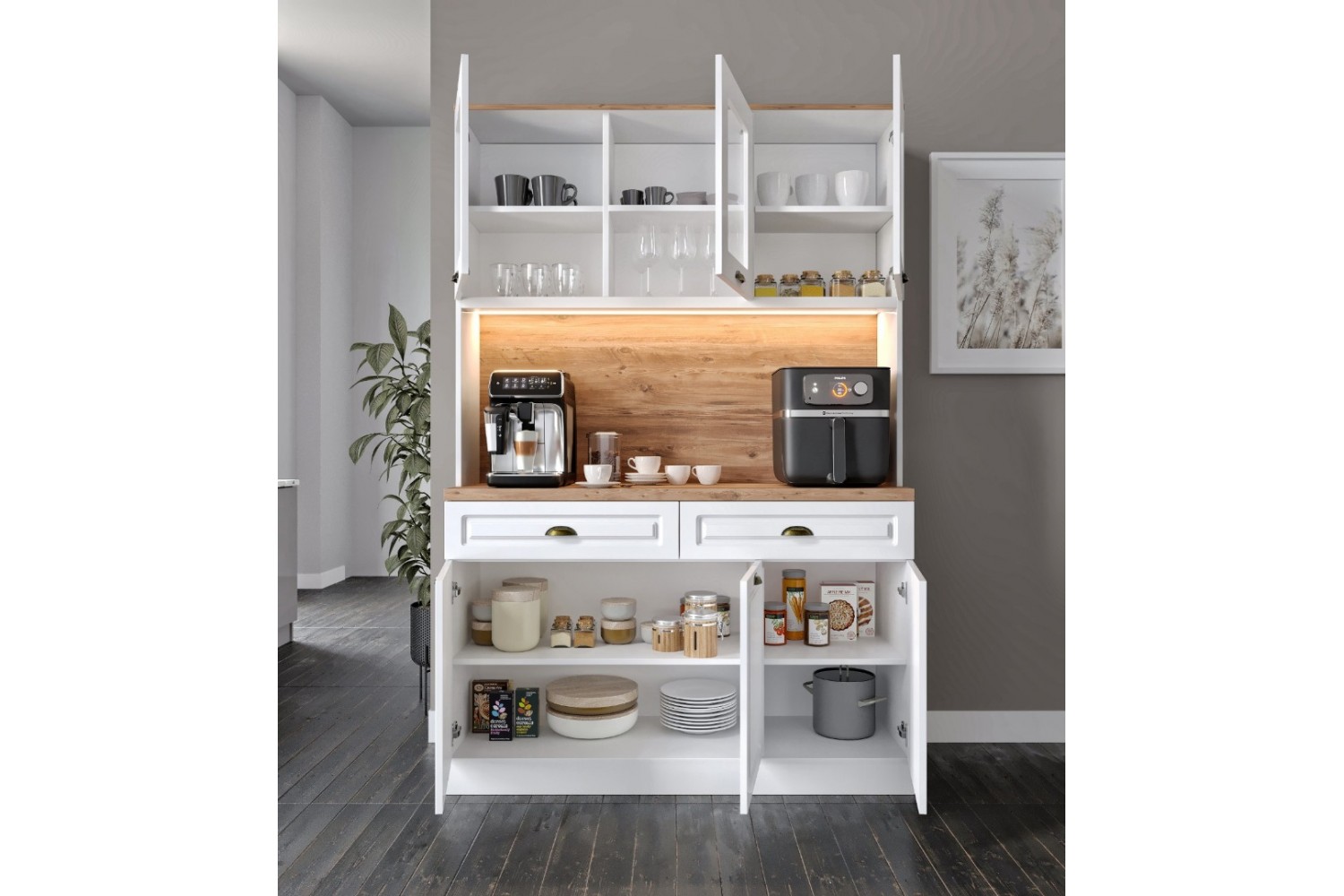 • Çok amaçlı kullanım: Kahve köşesi, airfryer dolabı, mutfak dolabı