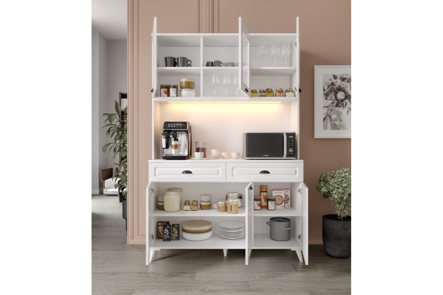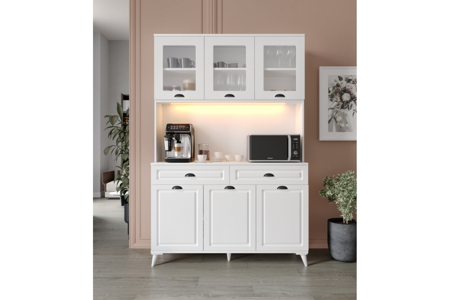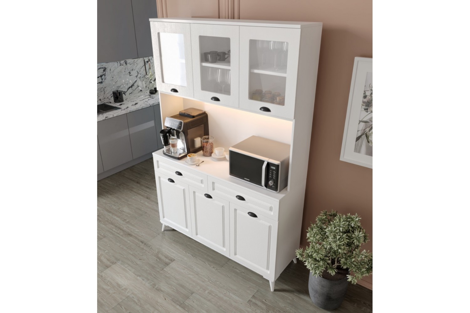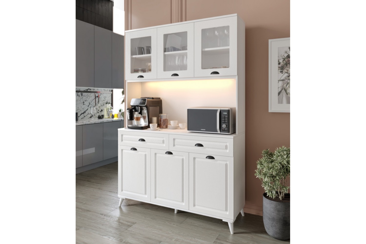 Luna 140 cm Kahve Köşesi, işlevselliği ve estetiği bir araya getiren özel tasarımıyla mutfağınızda fark yaratır. Komple MDF gövdesi ve MDF üzeri membran kapaklarıyla uzun ömürlü kullanım sunarken, dokunmatik sensörlü LED aydınlatması ve 2 priz girişi ile kahve makinelerinden airfryer’a kadar tüm küçük ev aletleriniz için ideal bir kullanım alanı sağlar. Hem kahve köşesi hem çok amaçlı mutfak dolabı olarak tercih edilebilir.