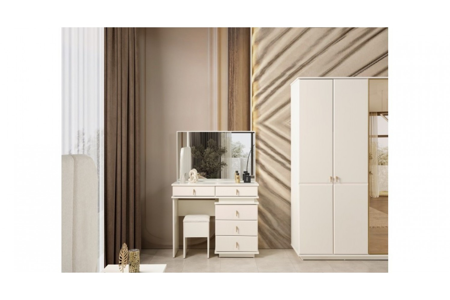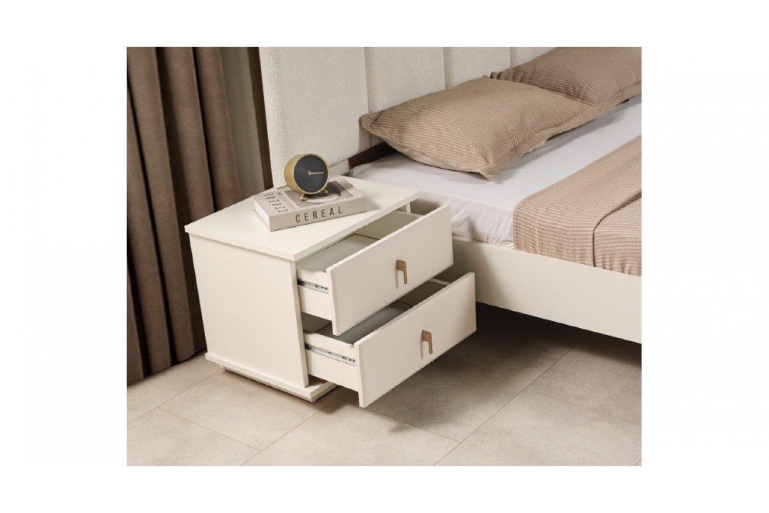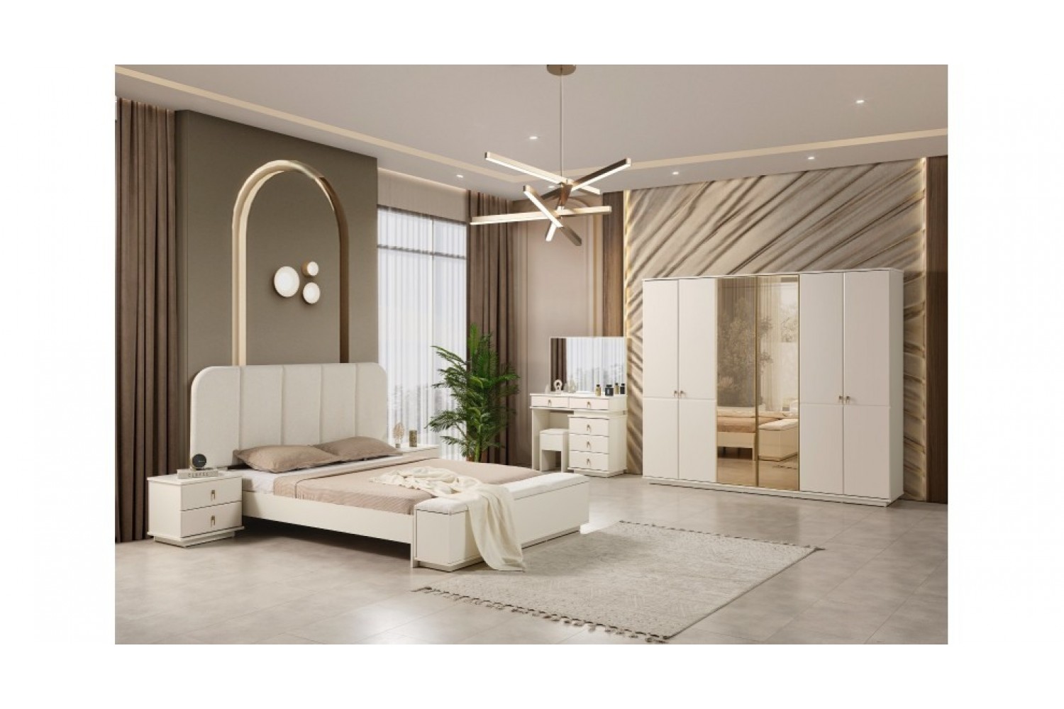 Takım İçeriği 1 Adet karyola( Kendinden Bazalı ). 1 adet gardırop, 2 adet komidin ve 1 adet şifonyerden oluşmaktadır.
