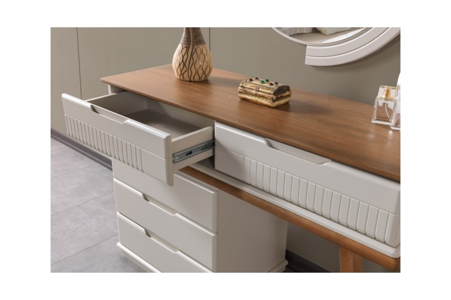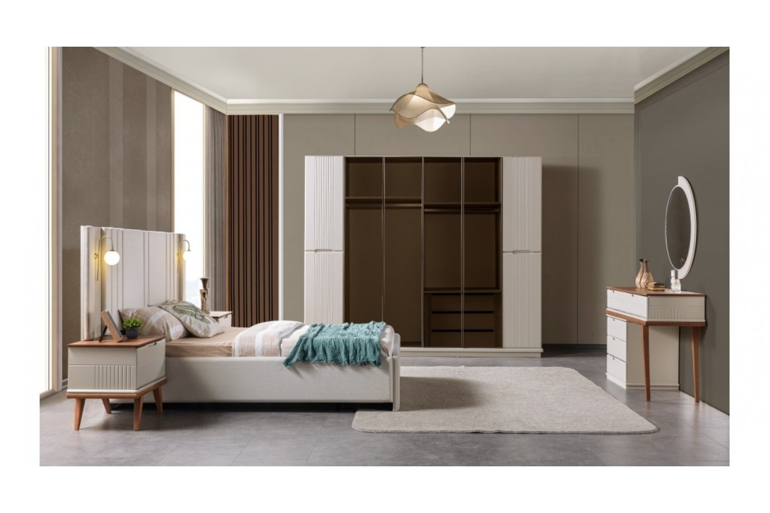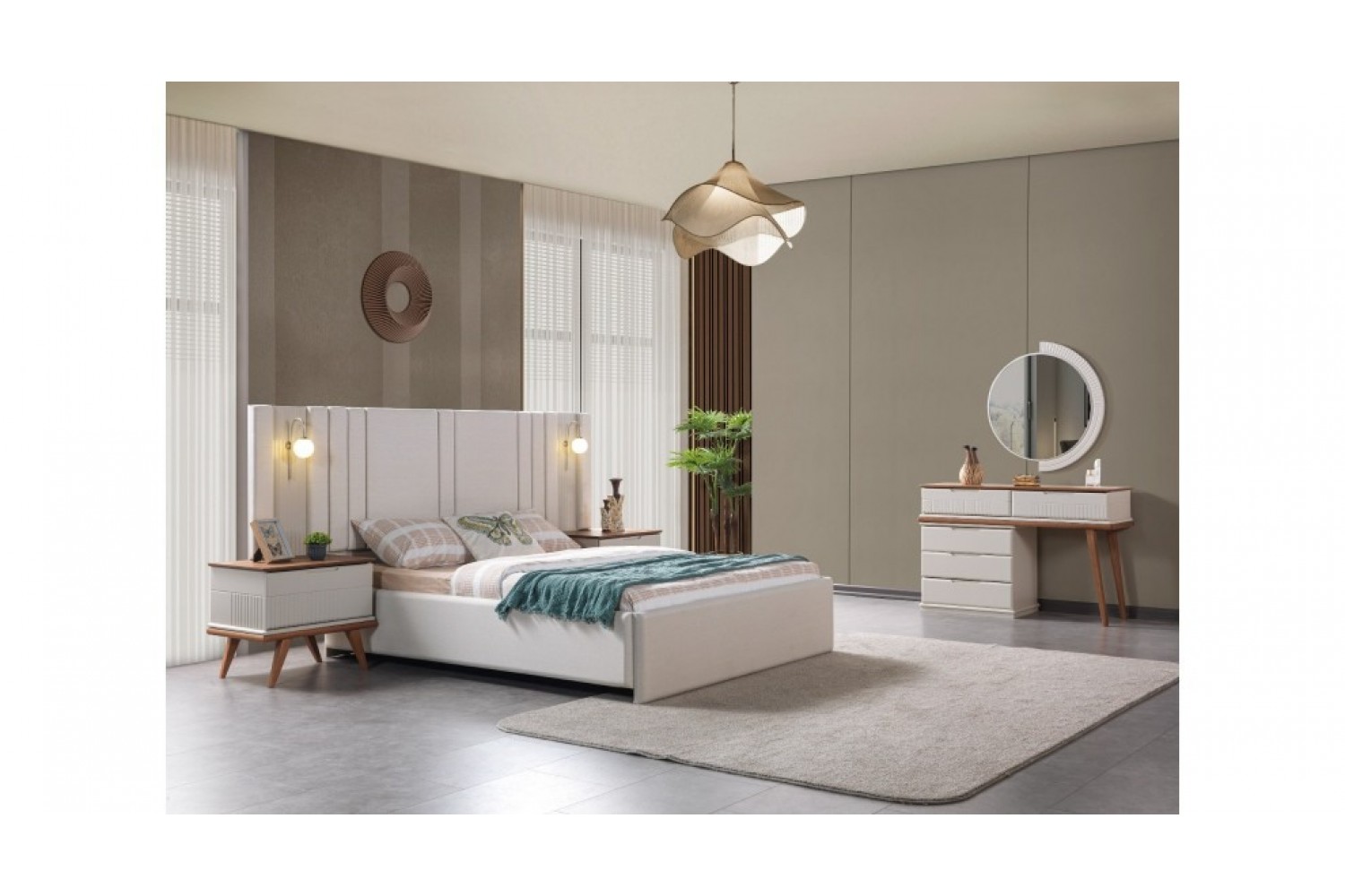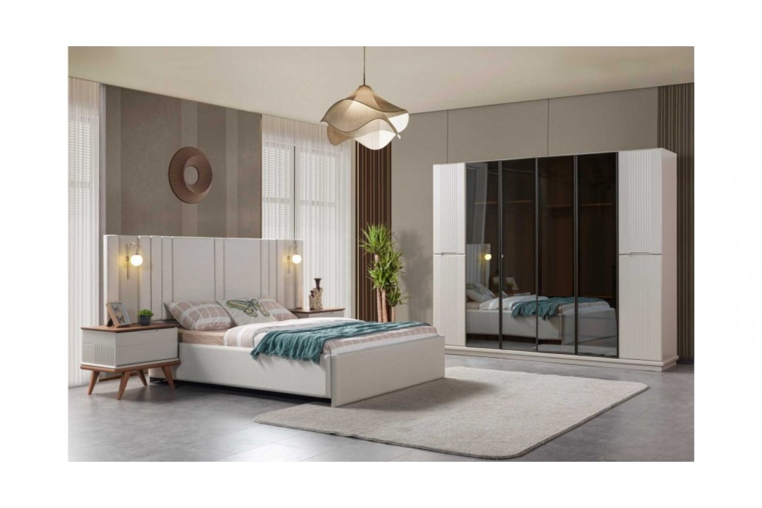 Takım İçeriği1 Adet karyola, 1 adet gardırop, 2 adet komidin, ve 1 adet şifonyerden oluşmaktadır. Bazalıdır.